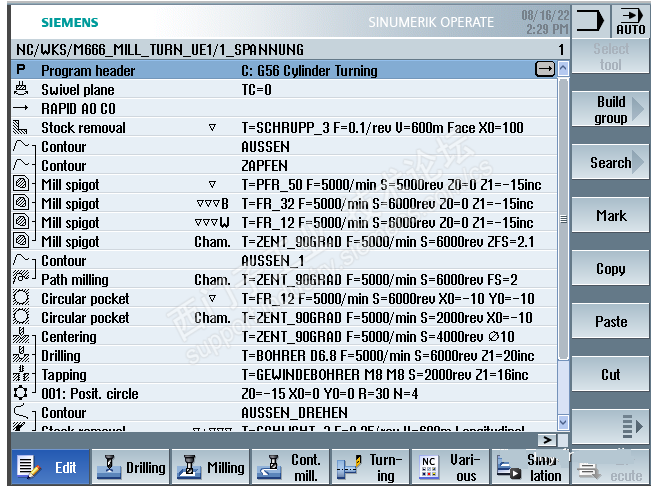 1. 使用ShopMill(铣削)或ShopTurn(车削)编程,编程界面如下图,这种编程方式,是面向工艺的高效编程方式,非常适合小批量零件的加工编程。