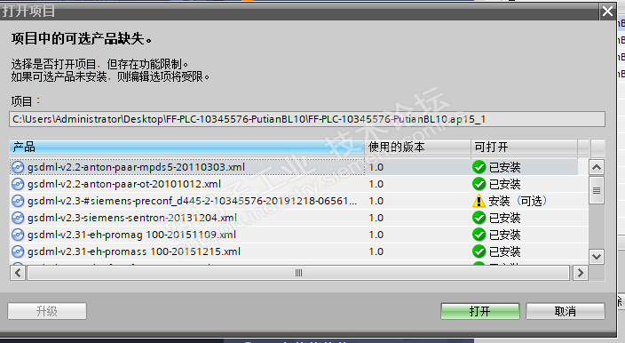 博图V15.1 打开程序提示 D445-2-10345576 GSdml文件缺少需要在哪里去找