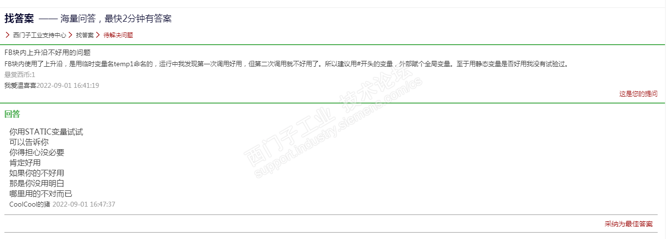 西门子工业支持中心一登录就出错 ,为什么不和技术论坛用同一个帐号呢,太不方便了,注册了多次都失败!!在选择最佳答案时一选择就报错显示如下: