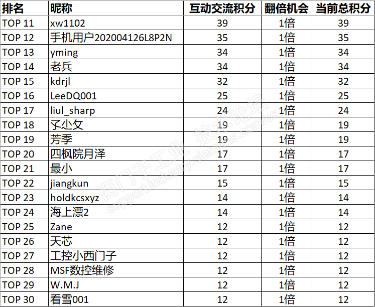 排名 网友昵称 互动交流积分 翻倍机会 当前总积分