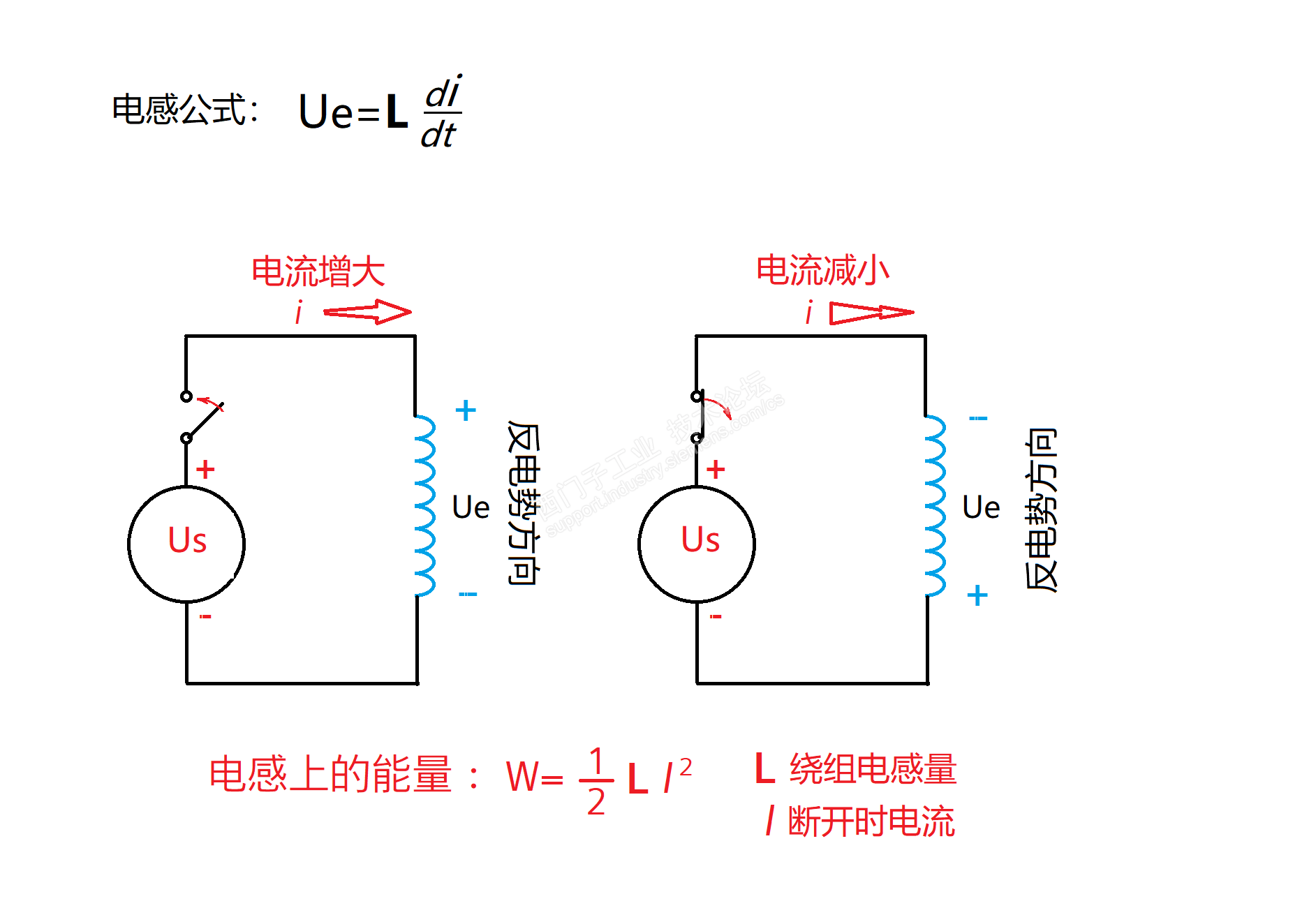 表明:绕组的感生反电势 由电感量和其上的电流变化率成正比。