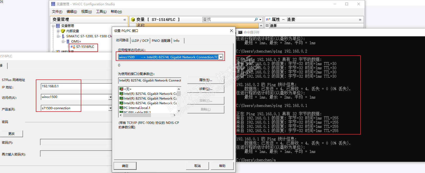 请教大神,如图,虚拟机配置为桥接模式,在虚拟机中已经ping通了所连接的PLC。wincc连接设置如图,PCPG设置连接网卡0,参数写PLC地址。但是却连接不上。以上诉的同样配置,关闭实际硬件PC,而在主机中使用PLCSIM4.0虚拟网卡,则wincc能正常连接,这是怎么回事呀,哪里还有设置要做嚒。谢谢
