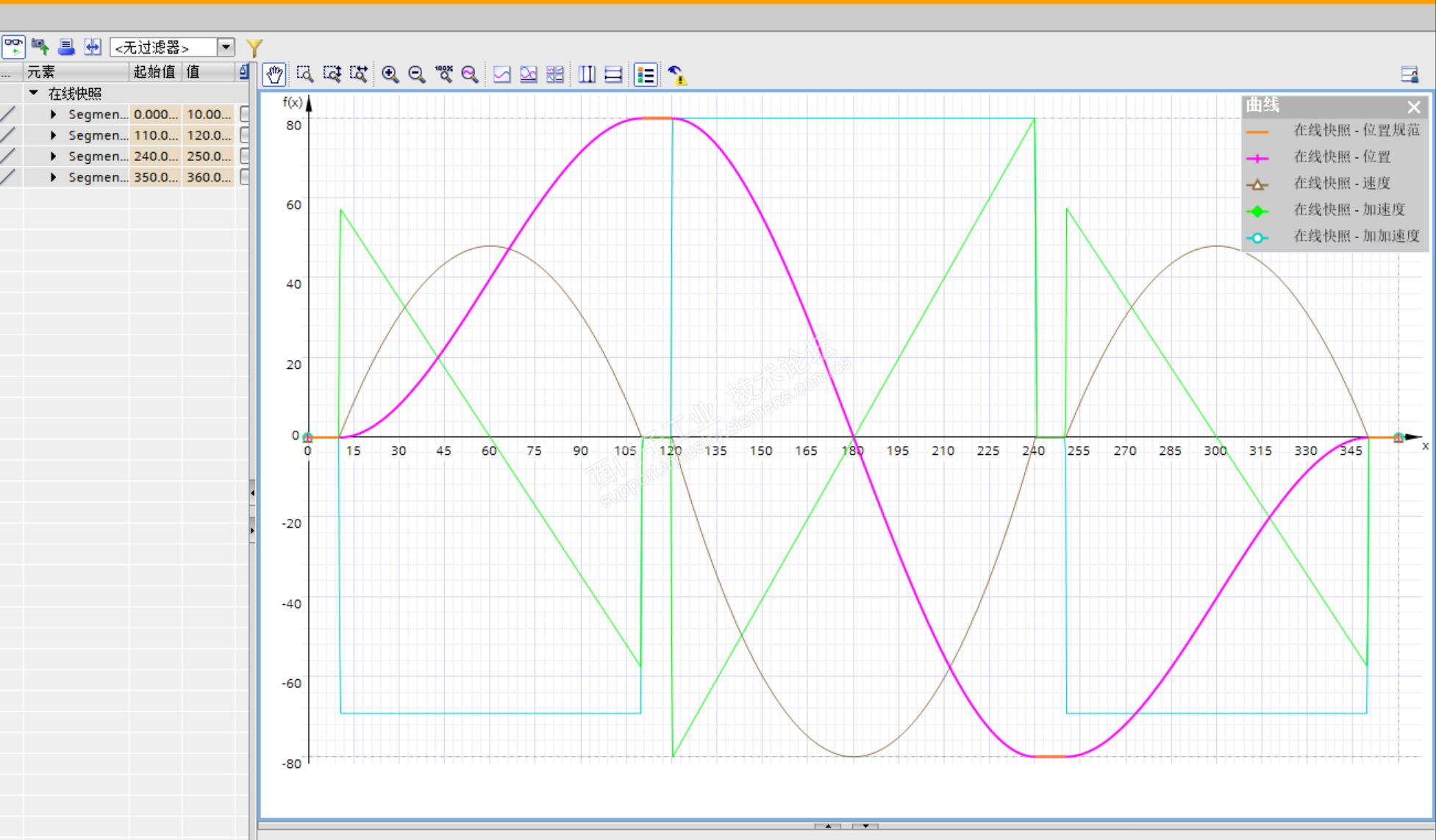 使用 FB LCamHdl_CreateCamAdvanced (FB 31100) 生成的凸轮曲线好像用的是系统插补,有没有参数或者办法改成基于VDI的优化呢? 想要图1那种过渡曲线