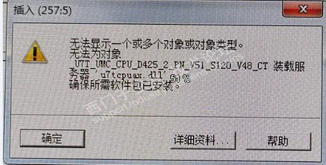 提示 “无法显示一个或多个对象类型。无法为对象U7T_UMC_CPU_D425_2_PN_V51_S120_V48_CT Z 装载服务器‘u7tcpuax.dll' ”。确保所需软件包已安装。