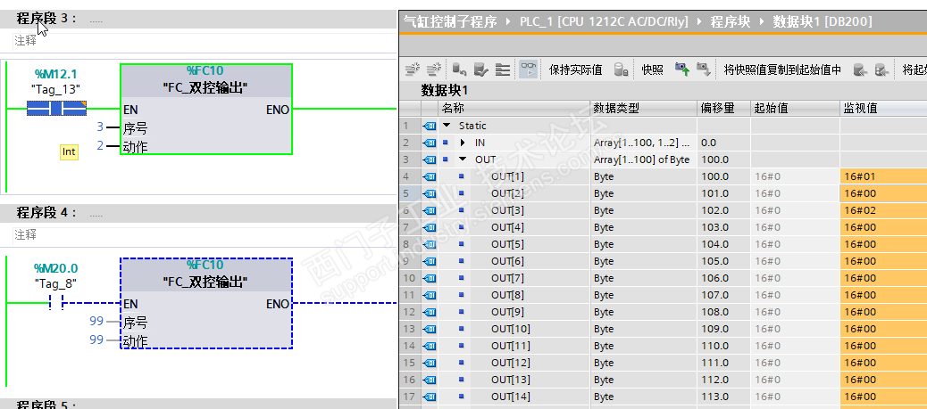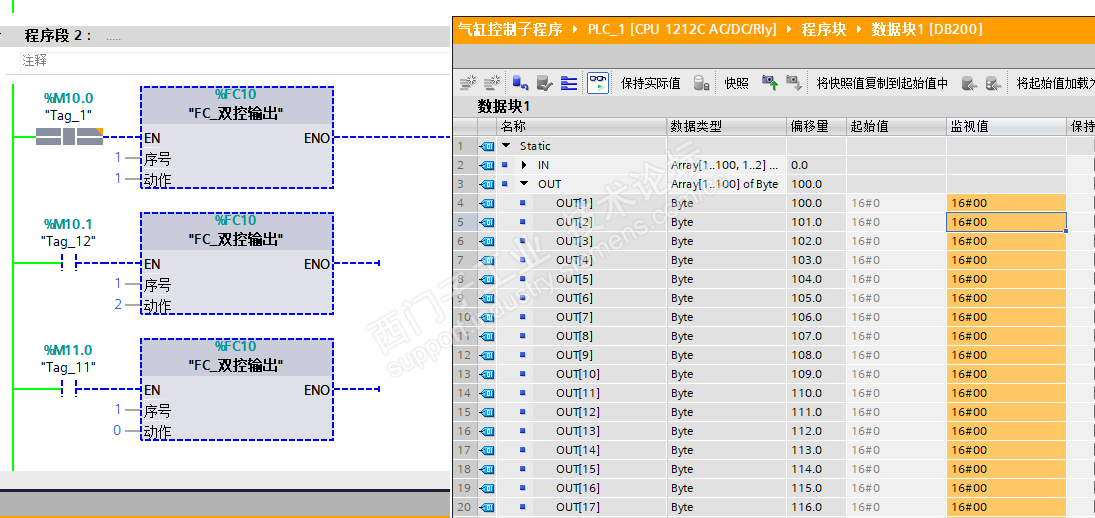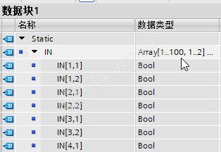 输入区使用二维数组,IN[序号,伸缩位] bool ,将气缸伸缩位状态 传送到DB块中,所有程序中状态值都可以直接从中读取