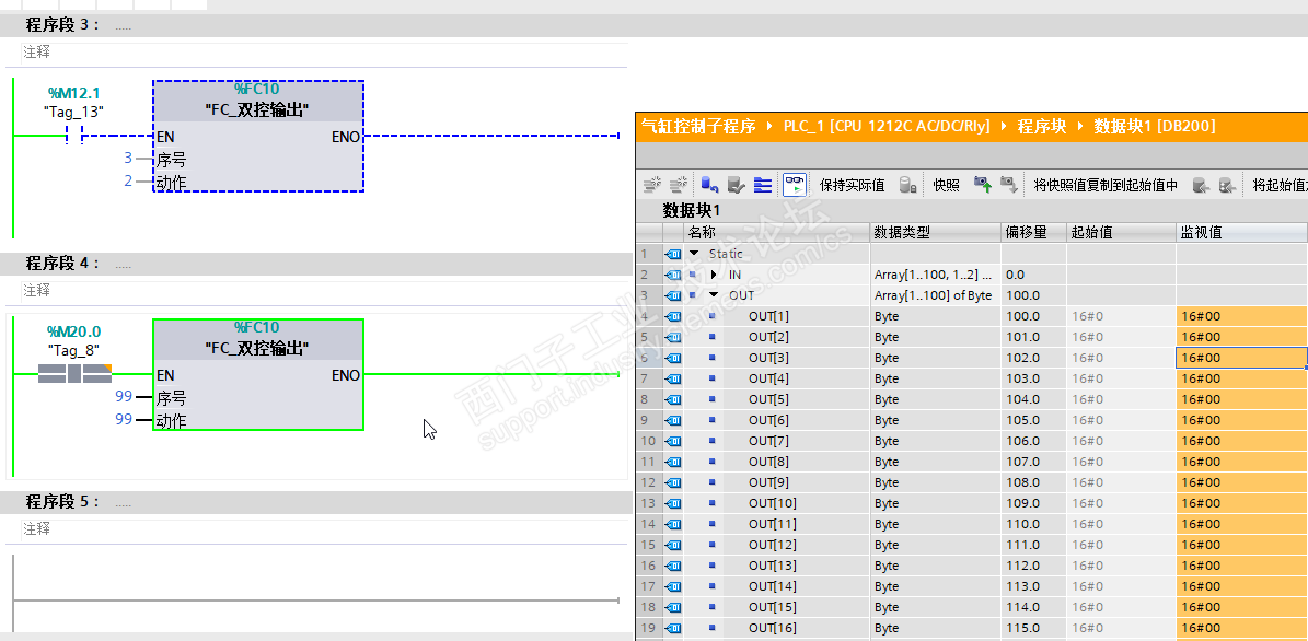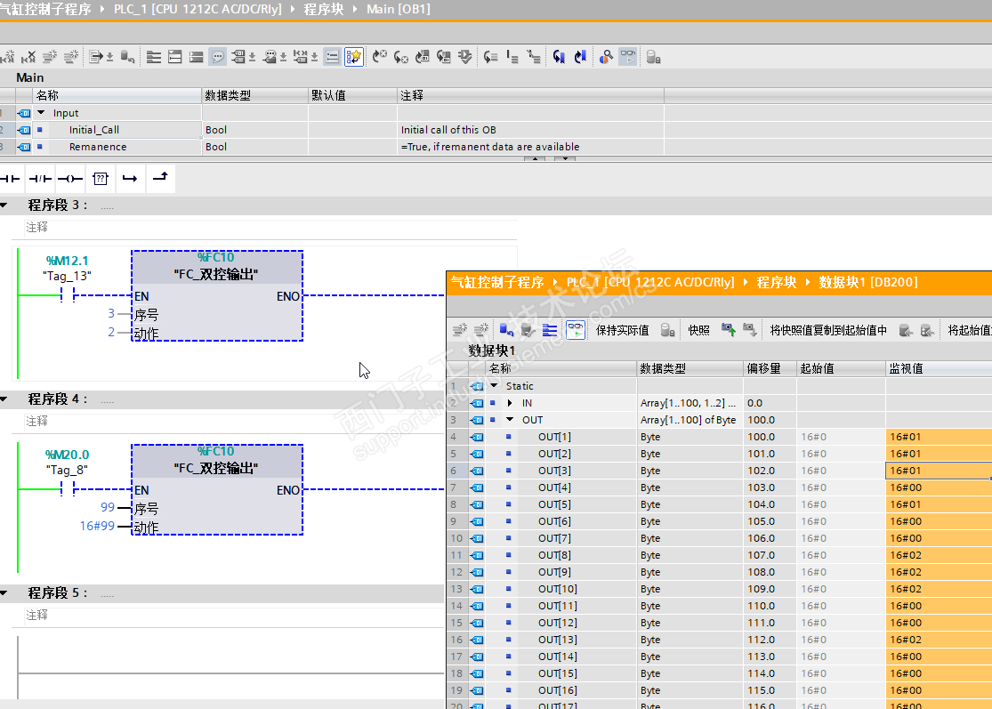 首次上电,确认DB块,OUT区数据都为0
