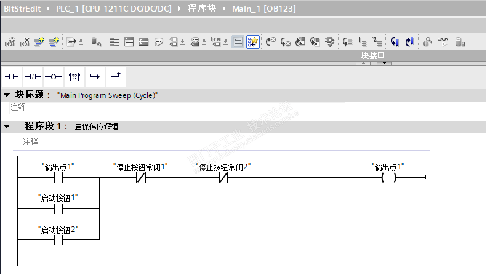 这是我们经常见到的位操作启保停逻辑:它不但用在对Q点的操作,也常常用在对状态、标志位的操作。
