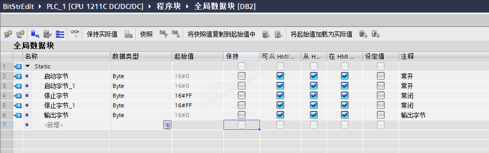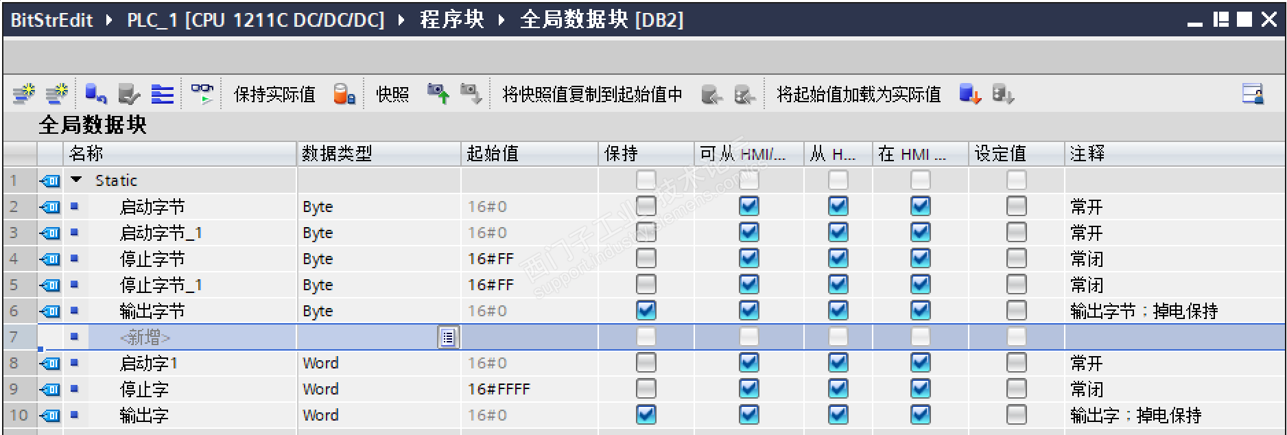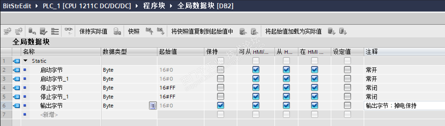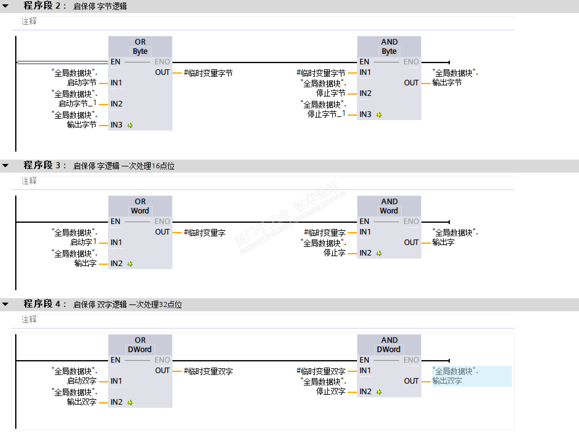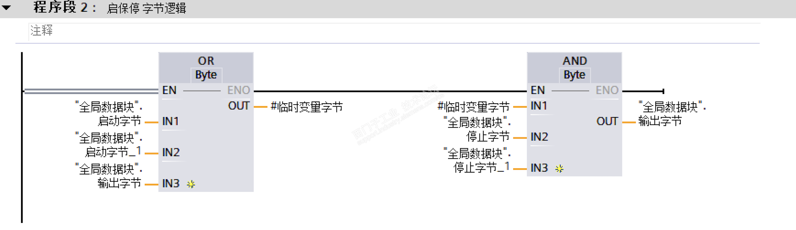 因此,当我们使用字节逻辑操作时,它就是下面的形式。一次操作8个通道各自独立的 “启保停”逻辑;