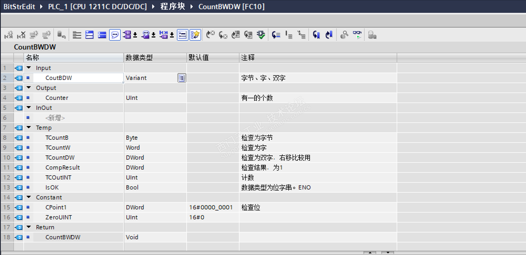 仍然可用Variant 接口,做一个FC处理不同数据类型的位字串。数据类型错误,ENO=0