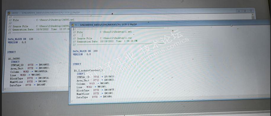NC VAR selector软件是生成NC变量然后在PLC中生成DB,但是最近我在看老外的程序时发现一个比较有趣的事情。创建的NC变量在是在FB块的静态变量中,然后使用FB2去读取该变量值。然后我试着去理解NC变量中每个参数的具体含义,又在我之前测试的程序中发现一个问题。第一次我使用NC VAR SELECTOR创建了一个34090的变量,该变量在PLC中生成了一个DB120的数据块,该变量的SYNTAX_ID的值为16#82。但是之后我在创建任何变量SYNTAX_ID的值都为16#83了。我后面也测试在新项目中或者删除原有项目中的所有NC VAR的DB块以及源文件重新创建34090的变量,SYNTAX_ID的值一直都为16#83,甚至测试各个版本依然无法得到SYNTAX_ID为16#82的参数。试着寻找资料看着是否有关于这里的具体解释但是都没找到。各位大神能否帮小弟解释一下。