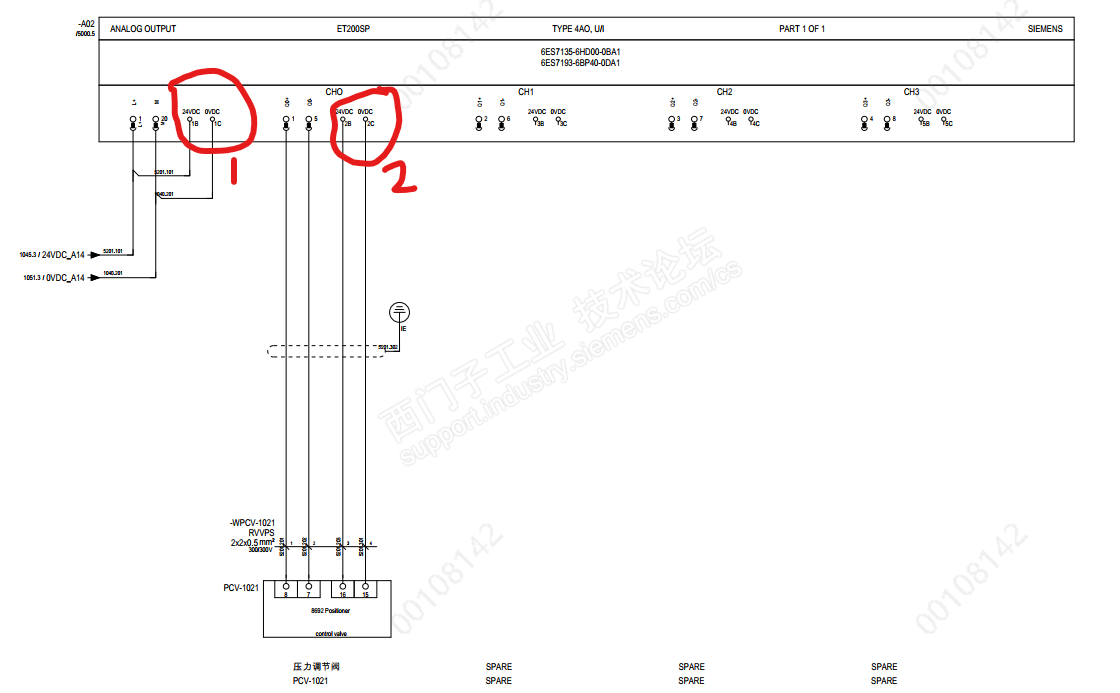 标记1什么意思啊,AO模块不是有已经有供电,为什么还会有0~24V供电,标记2处是模块给阀门供电吗?