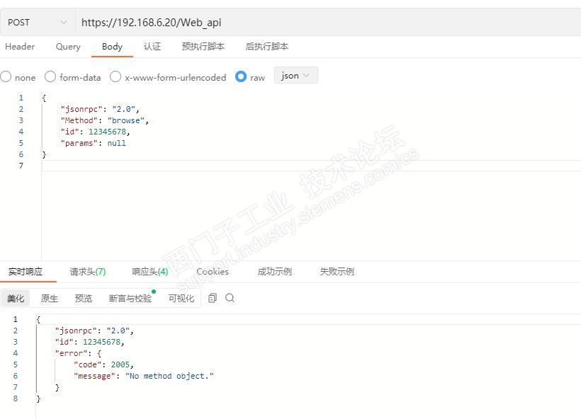 看了个文档S7-200 SMART Web API 开发手册。试了下结果: