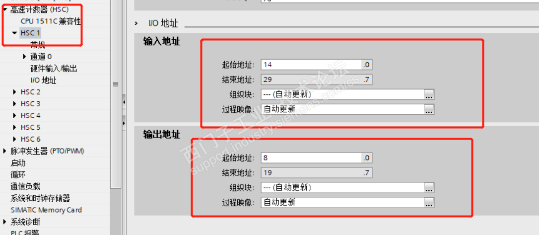 S7-1512C硬件组态时HSC里面的输入输出地址干啥用的?