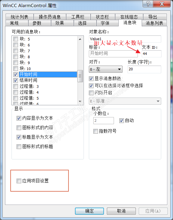 首先在消息块中勾选:过程值1、过程值2,将名称分别改成开始时间和结束时间。