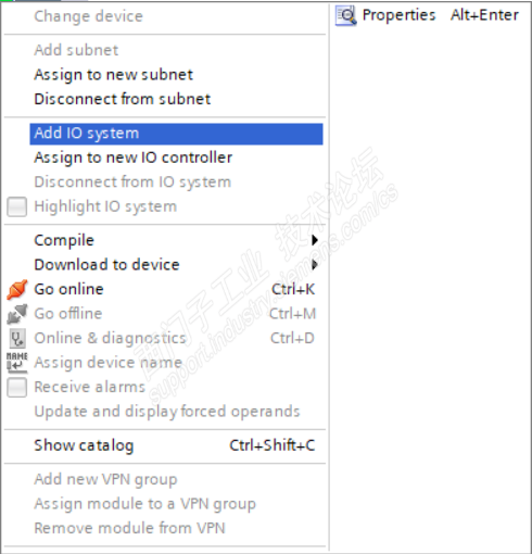 该值在刚刚初始的时候是没有的,需要右键选择需要配置的网络端口,然后选择:Add IO system. 如下所示: