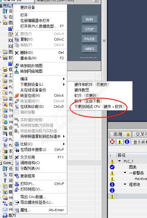 点击取消,然后选择下载到“测试CPU(硬件+软件)”就可以了,如下图所示: