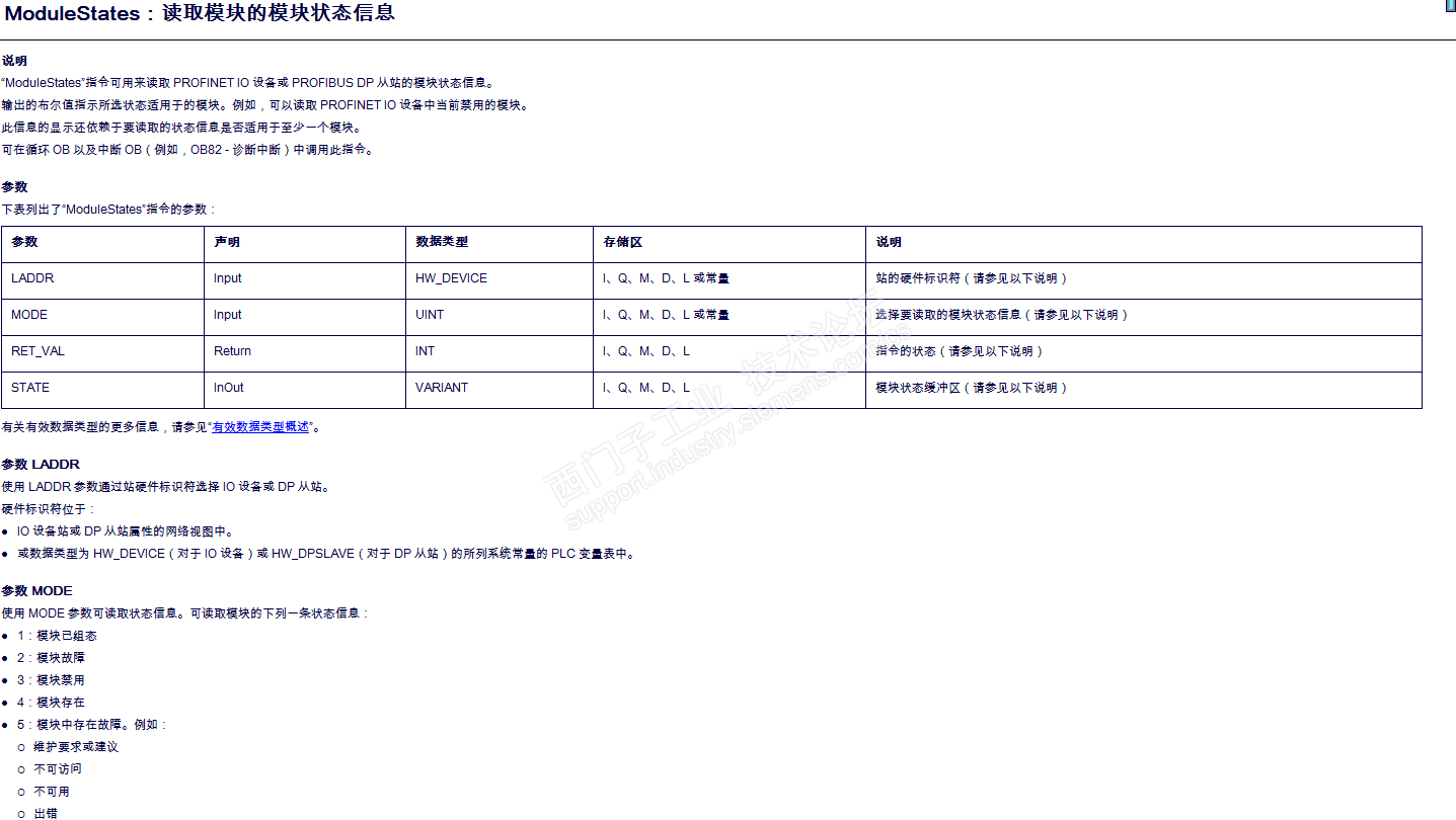 4.1200侧还有ModuleStates指令块(读取模块的模块状态信息),“ModuleStates”指令可用来读取 PROFINET IO 设备或 PROFIBUS DP 从站的模块状态信息,具体参考博途F1帮助。