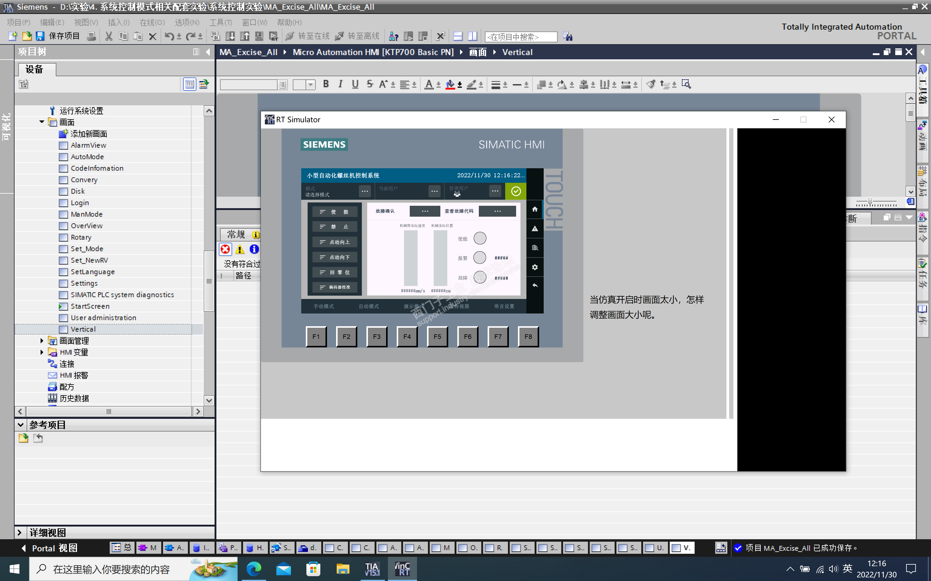 问题1:触摸屏仿真时画面太小。