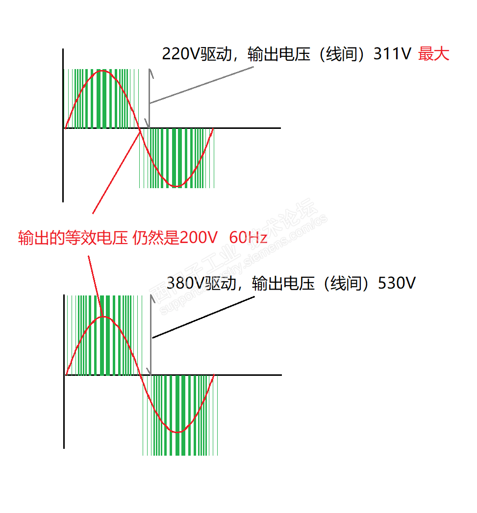感谢各位,如果用CU250S-2+PM240-2,供电改为380V,控制方式用矢量控制,但又有个疑问,如果把变频器的输出限制为200V,会不会有压频比这么个说法,也就是电压限制住了,频率也上不去,从而速度也达不到?
