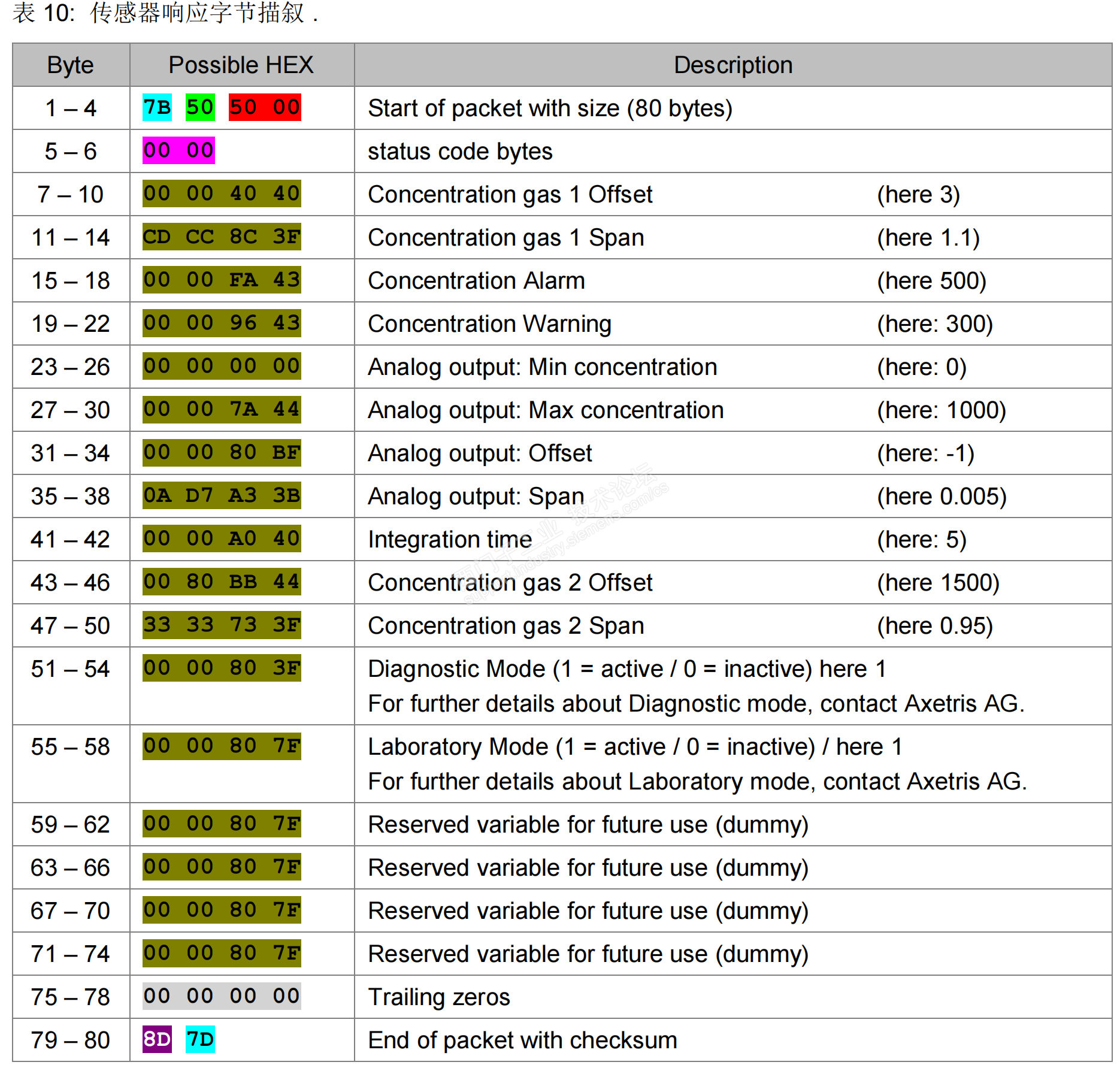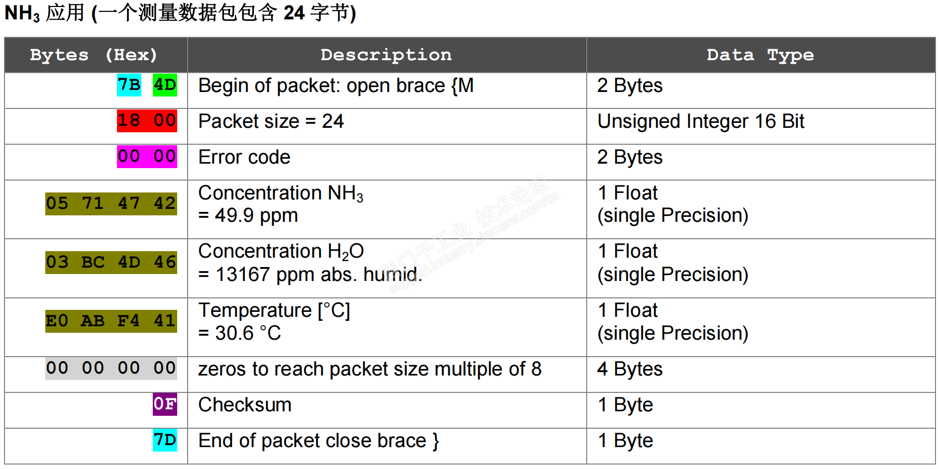 但是在调试时,发现数据掉帧,接收的数据基本上是8个字节。比如测量数据接收的数据为7B 4D 10 00 01 EA 10 7D。查看了一下分析仪的说明文件,有以下说明