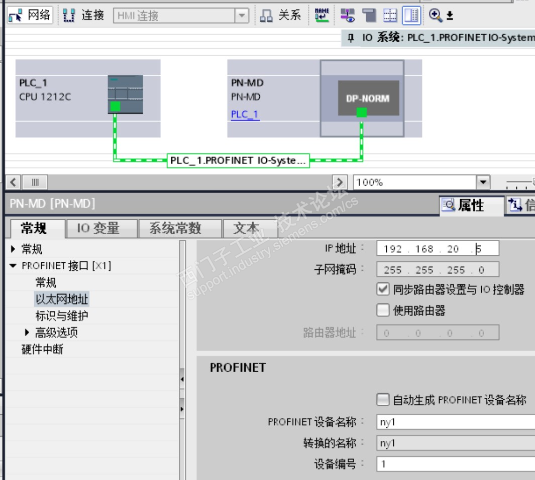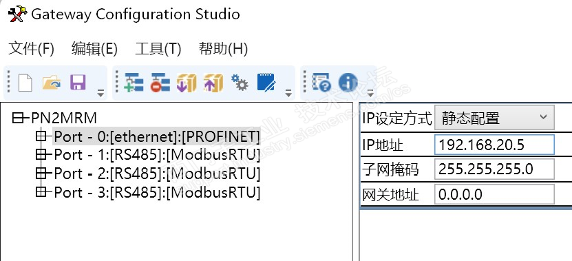 4、设置Profinet转Modbus485网关的IP地址及设备名称(本例为20.5名称NY1);