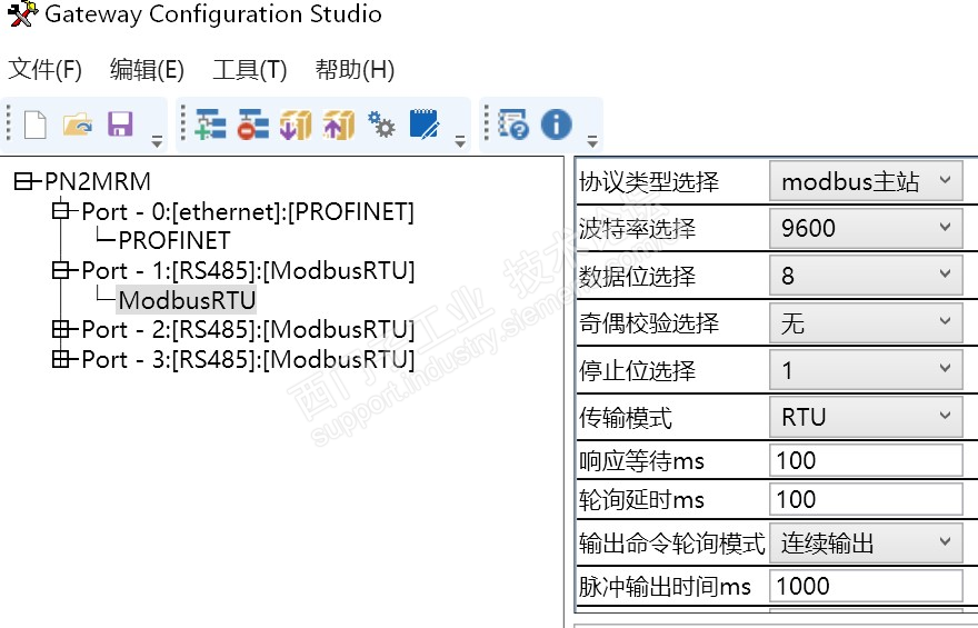 8、设置Profinet转Modbus485网关的485参数和要连接的Modbus从站保持一致(注意如果从站数据为是8奇偶校验不是无的话网关数据位要选择9);
