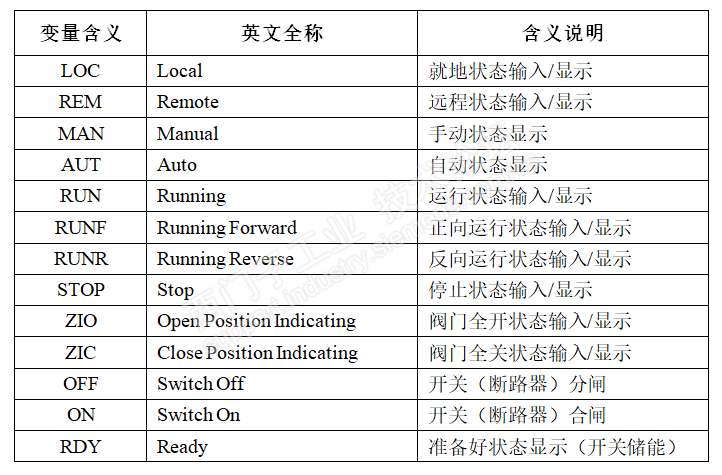 按照以上命名方法,比如一个开关量输入过来的设备运行信号可以命名为DI_RUN,一个供上位机显示的设备运行信号可以命名为S_RUN,这样用一个比较短的变量可以就可以表示变量的类型和含义,比较方便在上下位编程时使用。