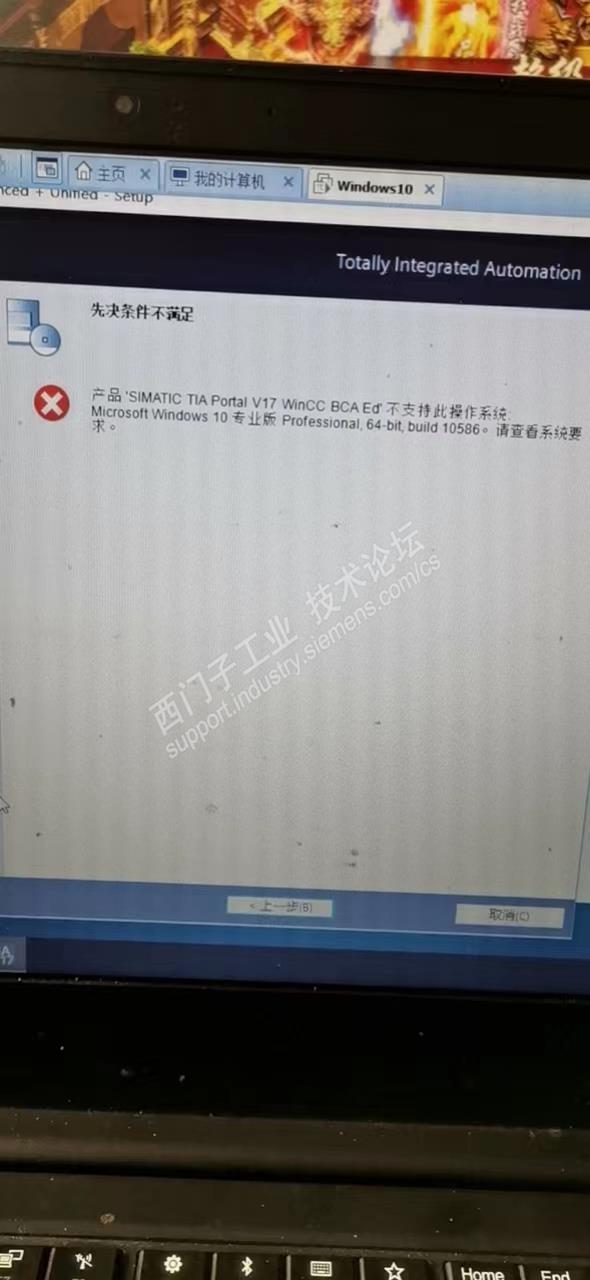 win10专业版的操作系统还有安装限制吗?这也太离奇了吧?wincc BCA ED是什么?怎么处理呢?