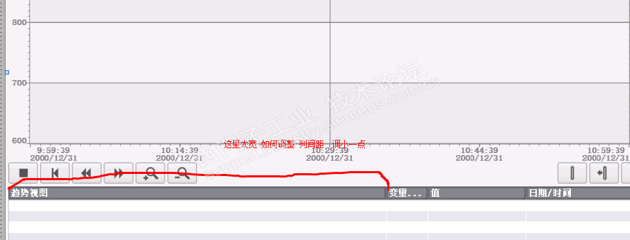 HMI 趋势图 的表格 列间距如何调整?