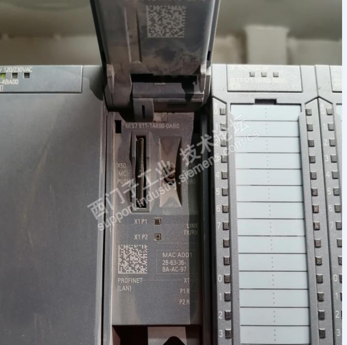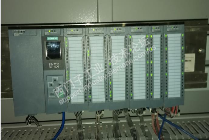 当时唯有电源模块的指示灯亮着,随手测量了一下电源的输入和输出都没问题,交流220V,直流24V,插头接触也正常,很明显CPU坏了,问题也随之就来了,这是怎么回事,当时感觉就是三种可能:一是是有强电串入,因为其它的模块有强电串入,导致了CPU的损坏,二是工作环境恶劣,因为厂房的环境温度本来就高,冬天在40摄氏度,夏天的环境温度在55摄氏度左右,再加上锅炉粉尘较大,控制柜密封不严,导致粉尘进入从而损坏CPU,这是我当时过去的时候打开CPU前盖,里面全是尘土,三就是产品自身的质量问题,因为毕竟运行已经了5年了,然后通过和供货商联系,因为过了质保期,他认为是第一种情形,强电损坏了CPU,于是我们又买了一块相同的CPU,当然了已经把程序下载进去了,可是当时我们也不确定是否还有其他的模块损坏,如果有其他模块的损坏,光买一块新的CPU还是不能解决问题,于是我就把整个柜子的电断了,把就地控制的电也断了,重新把所有的接线对了一遍,接线完全正确,并且所有的线对地的绝缘也是合格的。经过确认串入强电的可能较小,于是就光买了CPU,最后新CPU一来,我们就安装上了送电,一切正常。如下图