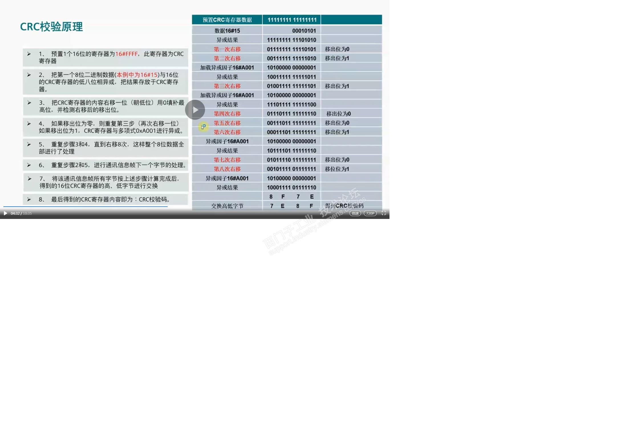 16#FFFF是CRC校验所需要的寄存器原码。至于为什么需要这个数据,没有理由的,CRC校验方式就是用这些1与右移出来的一个数据1进行异或处理的。