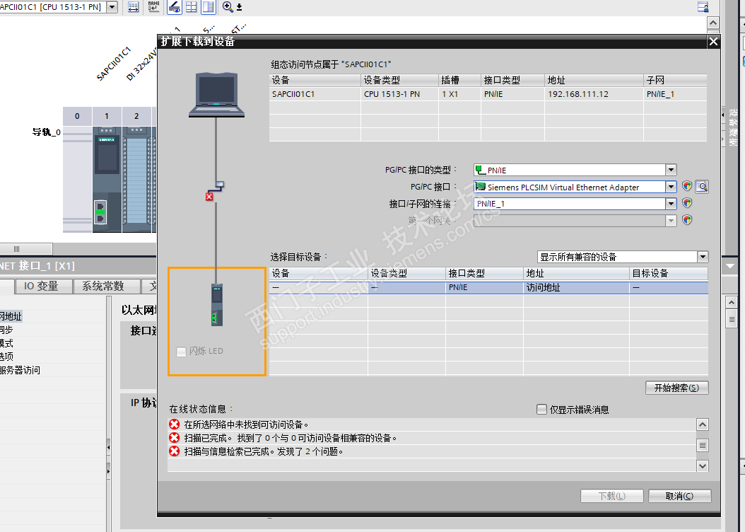 Advanced 下载搜索不到 PLC. 仿真可以