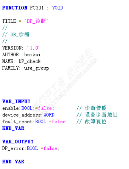 在SCL 里制作了FC301 用于DP 诊断