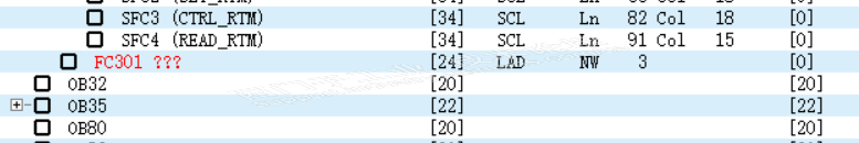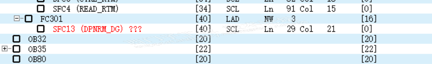 在程序结构里可看到FC301 还调用了SFC13