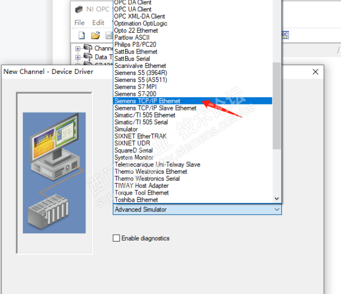 3、选择正确的驱动,我是用的以太网通讯,所以选的Ethernet