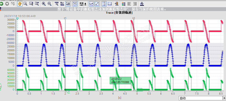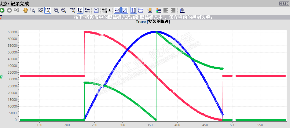 程序写好后,就是测试了,先用模拟功能测试,并使用博图的Trace功能监控生成的波形