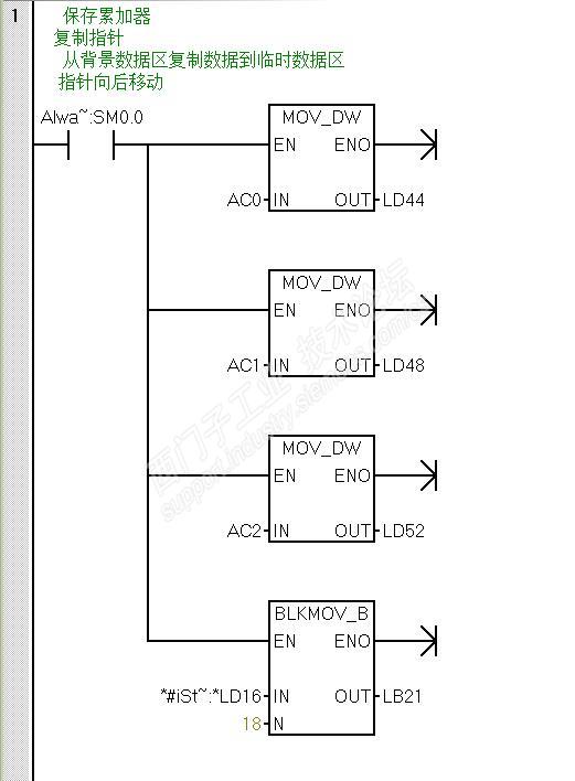程序有注释“保存累加器,复制指针,从背景数据区复制数据到临时数据区,指针向后移动”但是没有理解原理和作用。
