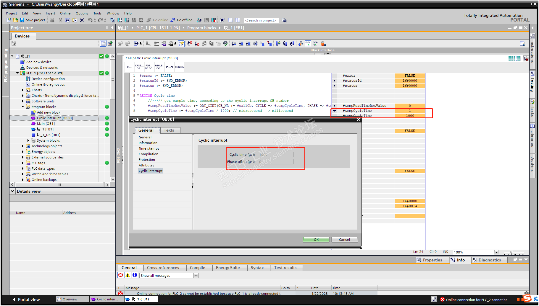 图中可以看到,这个指令返回的查询到的循环中断时间格式是毫秒,而且左侧也写了这个是1200和1500都可以使用的指令,也没具体说明在两个类型的CPU中会有什么区别,全当他一样。
