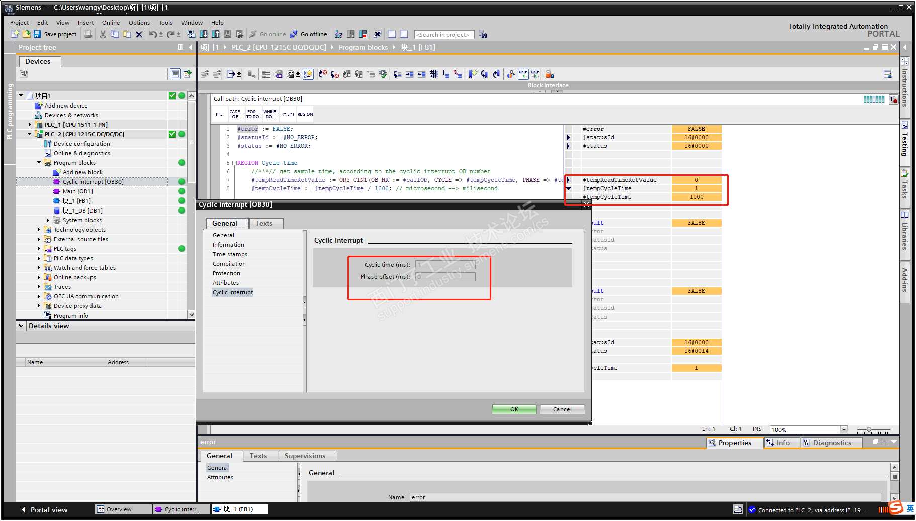 通过上图的仿真和在线监控可以看到,返回的时间格式是微秒 不是毫秒!!!而且1500的循环中断属性中关于循环时间的格式也是微秒。反复确认了自己的程序没有写错,这下我就怀疑难道是博图帮助文档英译汉的时候出了问题,,那英文版帮助文档里面对于这个指令是怎么解释的呢