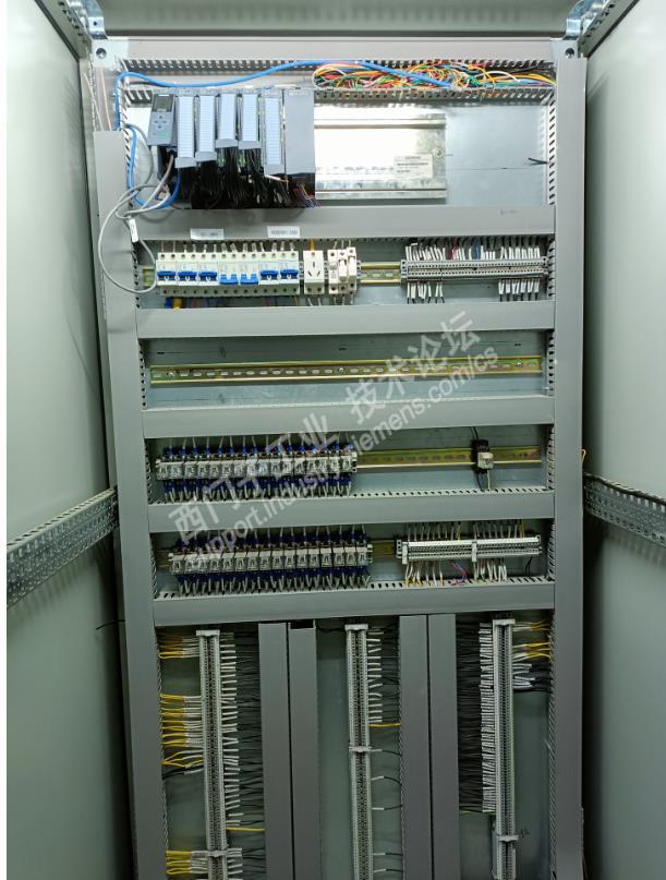 大家知道电厂是用水大户,所以水的供应是非常重要的,我厂的水是来自中水公司的,因为距离较远差不多有10公里左右,中水公司只提供水源,不提供压力,所以我厂自己在那里安装了水泵以及相关的设备,就地的控制系统是西门子的1500的plc,一台上位机,控制柜如下图