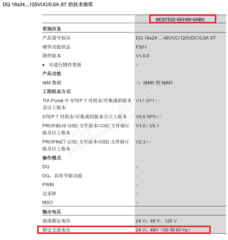DO模块有支持AC24V的,订货号:6ES7522-5EH00-0AB0,支持AC/DC 24V。