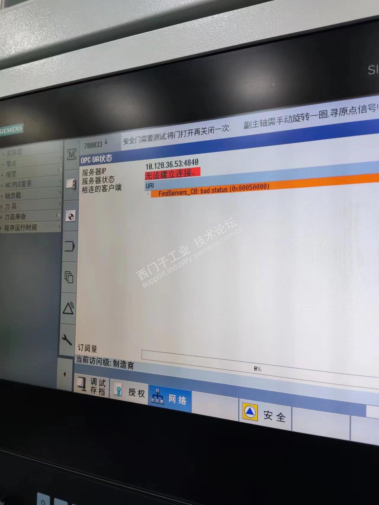 828D X130口连接交换机,opc ua设置完成后,显示 findservers_cb bad status ,状态 无法建立连接
