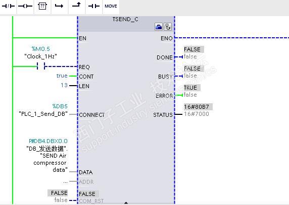 在做TCP通讯的时候老是报80B7 PLC做主站通讯不上 数据不能传出,请教大师指导下
