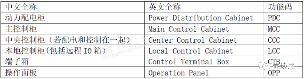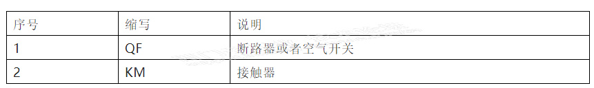 由于设计电气设计,先将下面要用的一些电器的缩写列表如下,您若和此有区别,请参考相关电气设计的国家标准和规范,此处仅做示意使用。