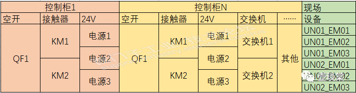 对于单个的柜子的梳理和上一节是一样的,只是梳理完成后的表格内会增加不同控制柜,目的是将单个设备的电气线路的来龙去脉梳理清晰。