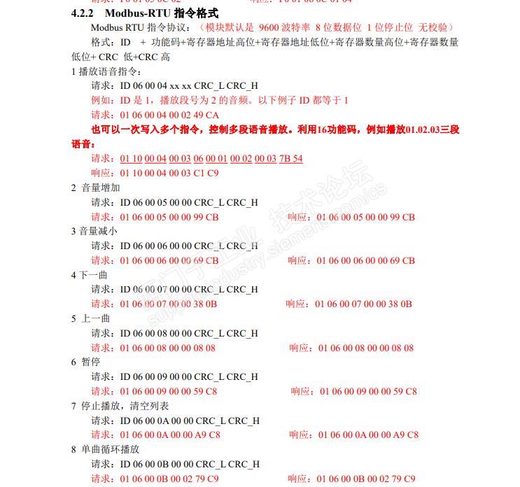 有一个语音控制器,带有485控制接口,怎么编写控制程序呢,这个语音控制器没有提供寄存器表,直接写入寄存器程序,我会编写。这个设备只提供了如果下图的请求命令符,不知道怎么编写程序了。请教