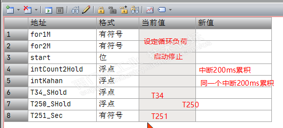 模拟负荷的循环子程序并非每个周期都运行,用200ms定时中断触发在主程序里面调用。