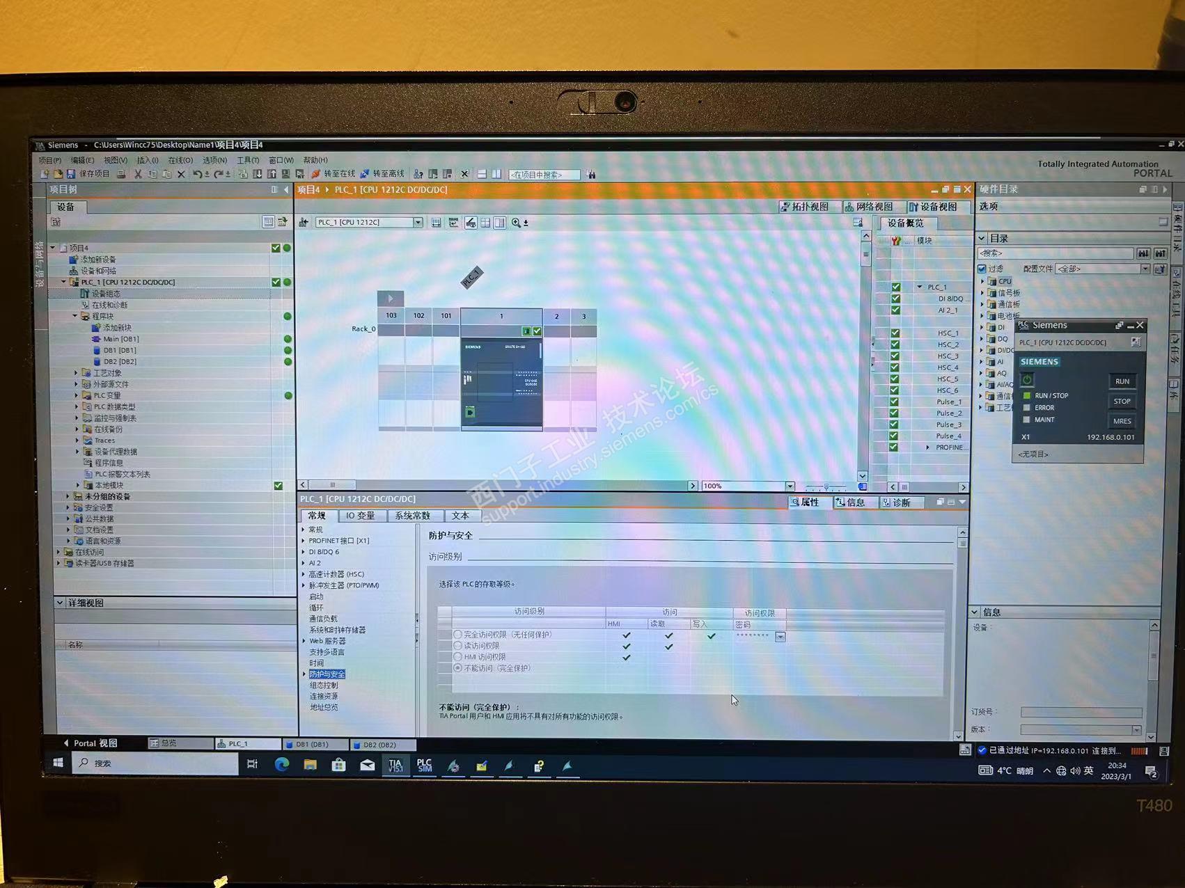 1;我组态了访问与安全的最高权限输入了密码,但是在wincc通信并没有填写访问的密码发现也正常通信上了,2;和1200通信在报警记录中怎么没有AS消息的选择。