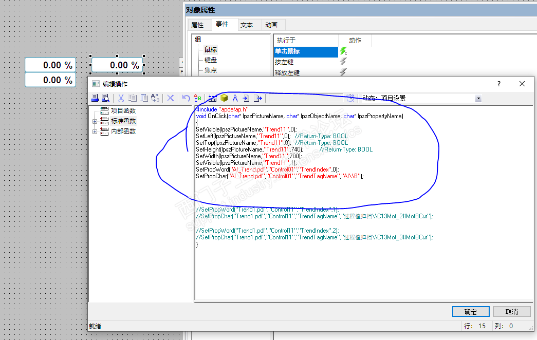 我做了一个趋势画面,趋势画面下边有RulerControl控件,我想点击IO域是显示对应的趋势曲线,让RulerControl控件的名称随我点击不同的IO域分配不同的变量名,我该怎么写脚本?简单的说就是我有不同的10个模拟量显示,PT1001.TE1001,当我点击PT1001的IO域时,趋势曲线显示PT1001的归档值,RulerControl控件的名称也显示PT1001,目前我的RulerControl控件的名称不随IO域变化