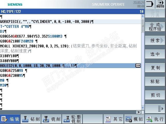 MCALL XCHEN23_200(结束退刀,参考坐标,安全距离,钻削深度,钻削速度)